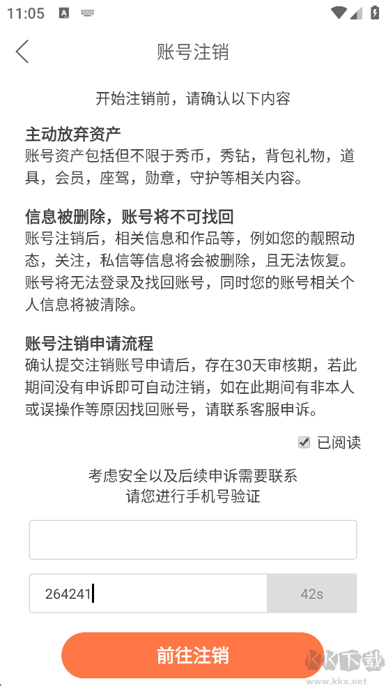 5、填写手机号后,输入获取的验证码,最后点击【前往注销】即可