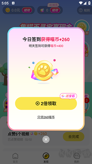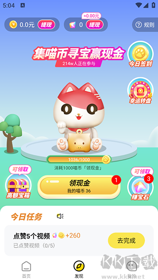 2、及时领取左侧的喵币,可以用于兑换现金