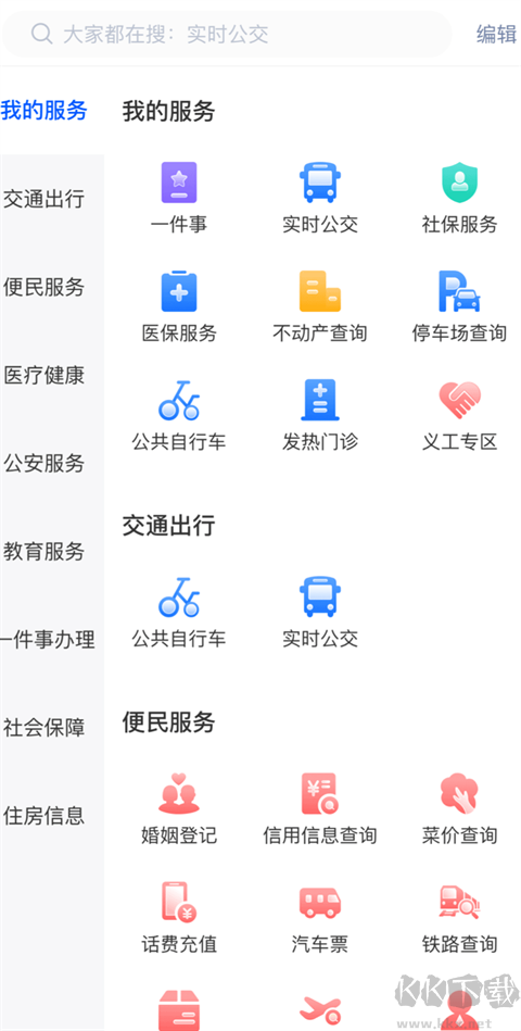 2、我的服务、交通出行、便民服务、医疗健康、公安服务.....层层架构,分类清晰;