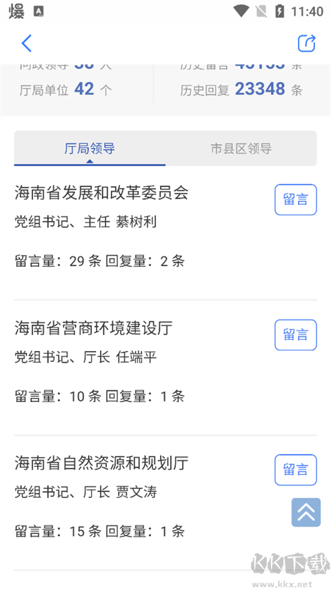 3、南海网App内可以选择给厅级领导或者市县区领导留言