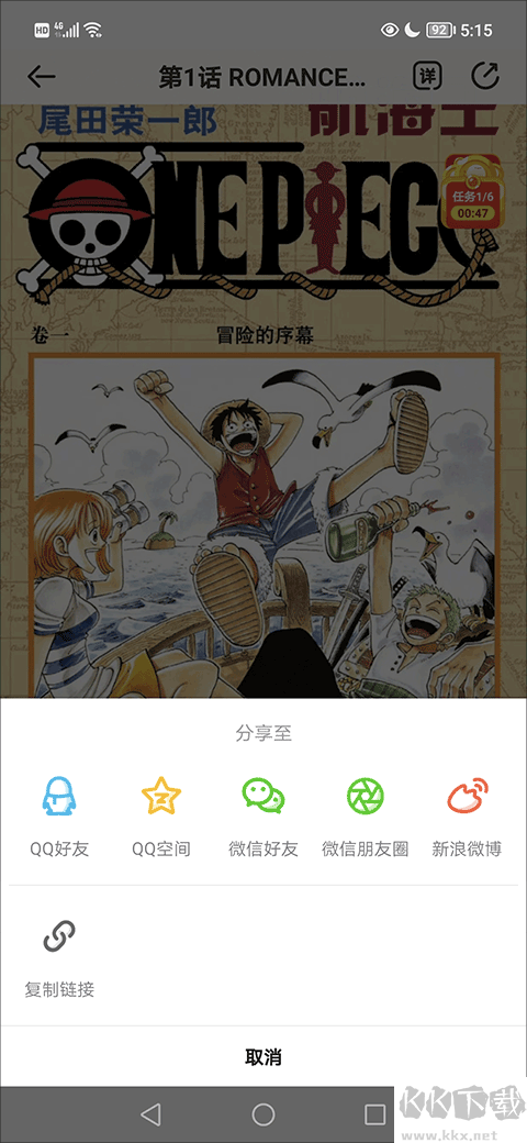 2、轻点漫画展现界面,在工具栏显现出来后找到并点击右上角的“分享”选项;