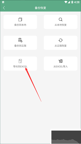 4、选择“导出到EXCEL”也可以一键将全部数据导出为Excel文件,还有备份、导入功能等你体验。