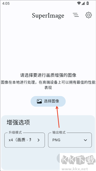 1、进入SuperImage app后点击【选择图像】