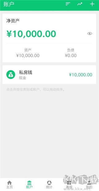 1、选择【账户】,然后点击要删除的账户,例如这里我们要删除这个私房钱的账户。