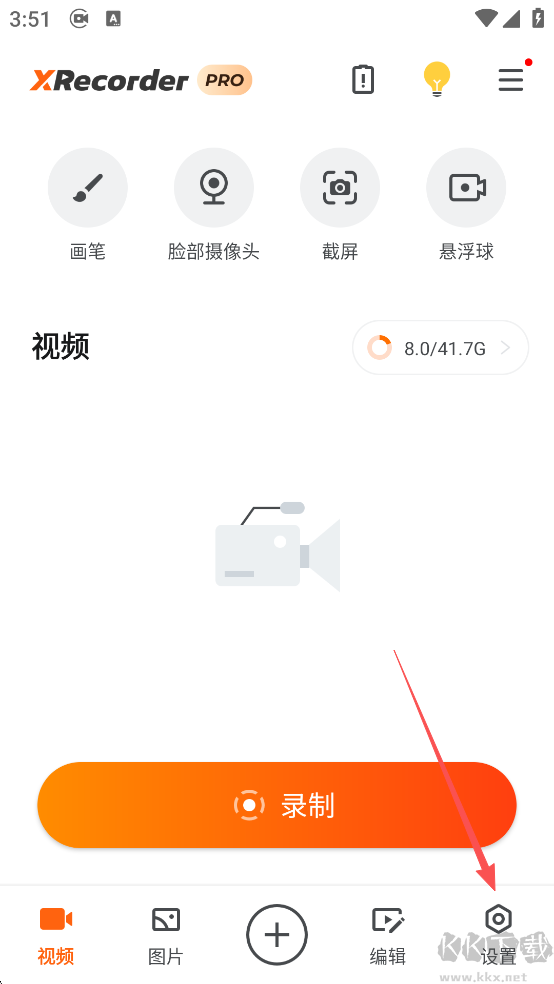 1、打开XRecorder录屏大师,点击右下角的设置选项