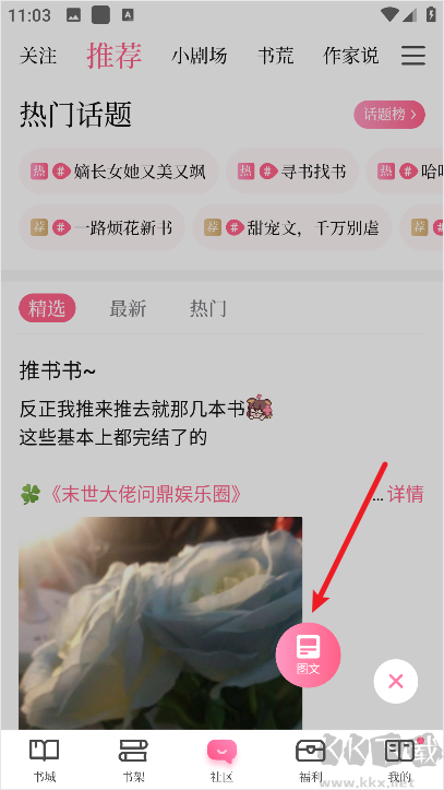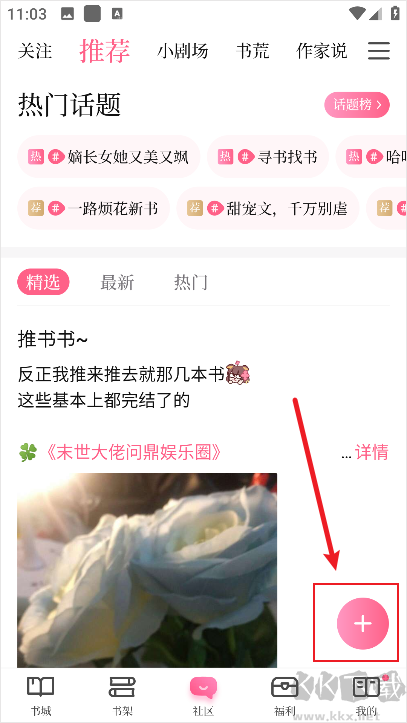 1、进入红袖添香手机版后点击下方社区