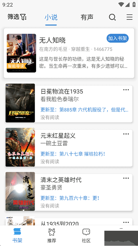 3、感兴趣的小说书籍可以加入到书架方便随时查看;