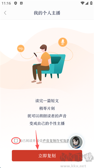3、勾选“我已阅读...”,随后点击屏幕下方的“立即复刻”。