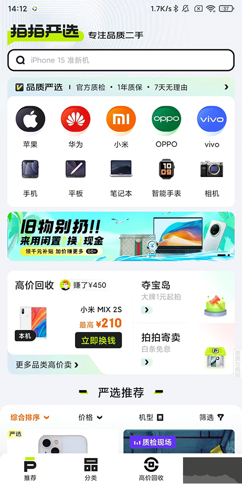 拍拍严选:品质保障——支持7天无理由退换、一年质保!无论是二手手机、电脑还是平板,都可放心选购。