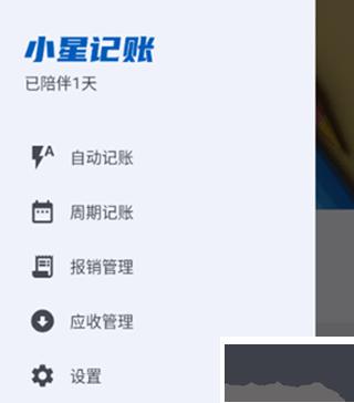 1、打开小星记账,点击左上角的设置功能选项,然后选择“自动记账”功能。