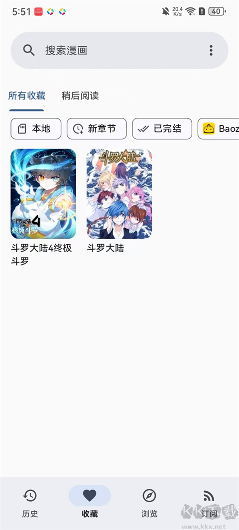 6、收藏页显示收藏标记的漫画列表。