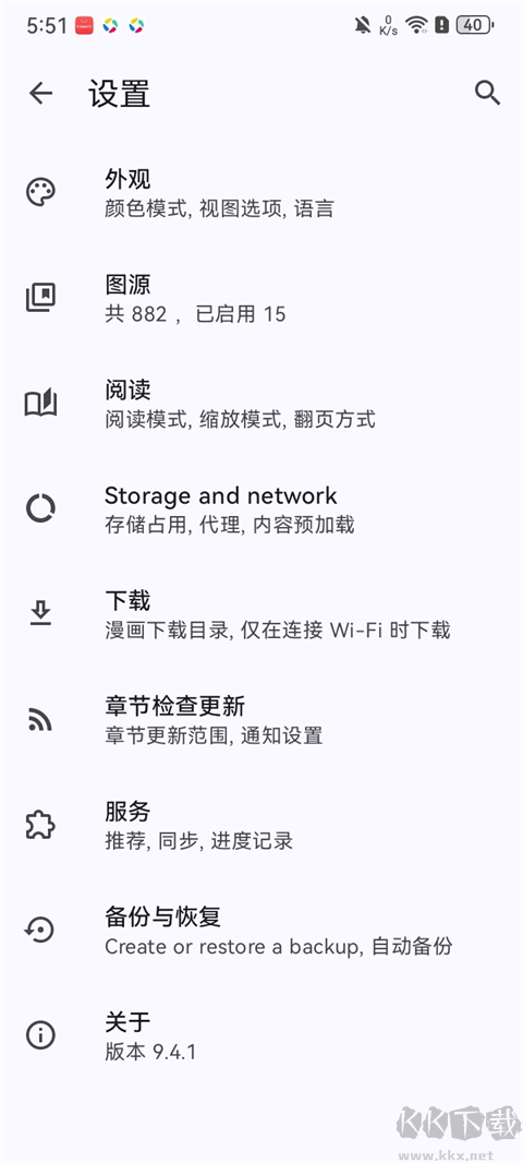 8、在设置中设置外观、图源、阅读等更多个性化功能内容。