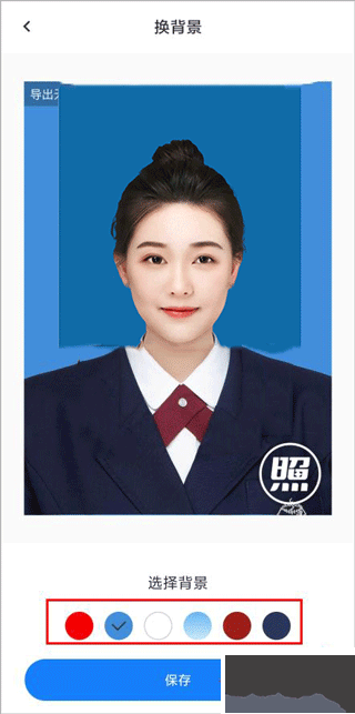3、上传需要换底色的照片,选择背景颜色,点击保存即可替换底色。