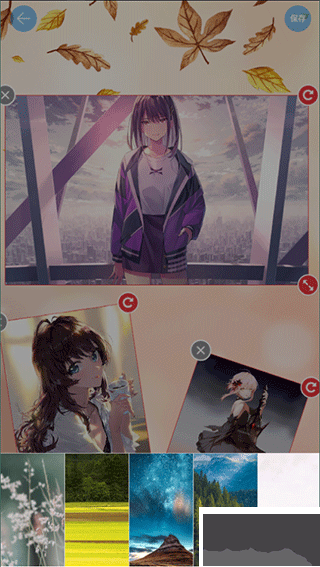 4、多次添加照片后,再根据需求调整每张图片的大小和角度,还可以自由更换背景哦;
