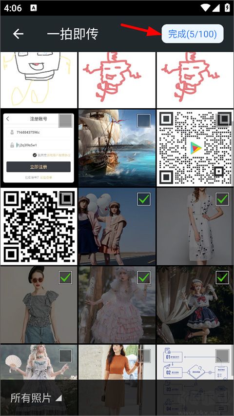 5、打开相册,选择要上传的照片,点击右上角完成;