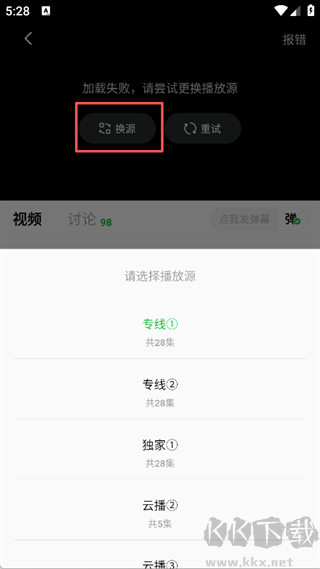 2、搜索成功后,点击即可播放,如果显示加载失败,我们就需要点击换源尝试更换播放源