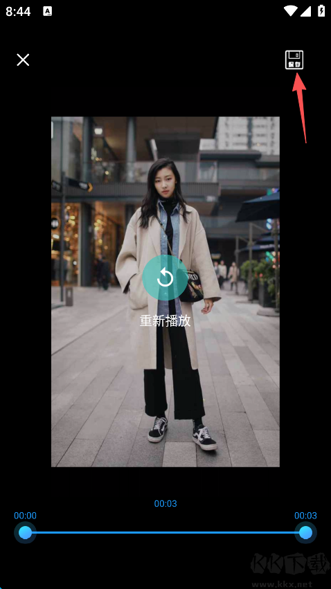 4、随后可以选取视频片段,点击屏幕右上角的“保存”。