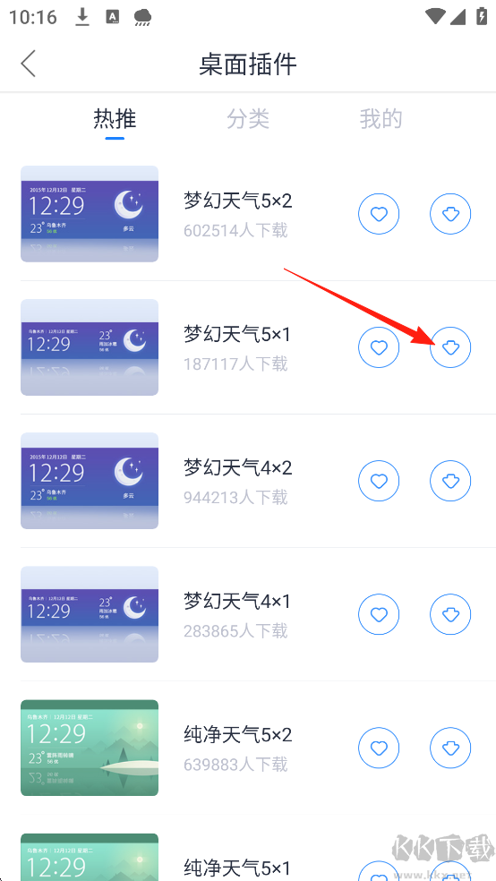 4、点击下载喜欢的桌面组件即可安装到桌面