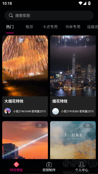 3、特效模板板块汇集了多种风格的模板,并支持搜索模板,方便快速找到所需素材。