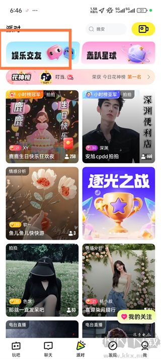 2、或者在派对板块内点击娱乐交友