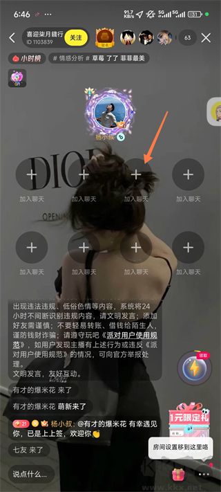 3、选择一个房间进入