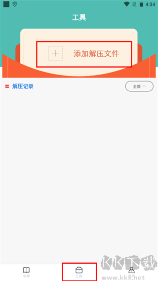工具栏支持快捷解压功能,可一键解压本地的压缩包文件,解压完成后可对解压包内的图书资源进行提取,快捷添加至书架