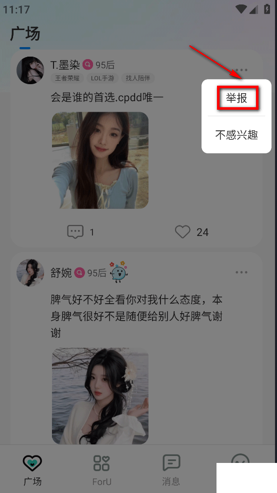 2、选择【举报】可以举报这个人。