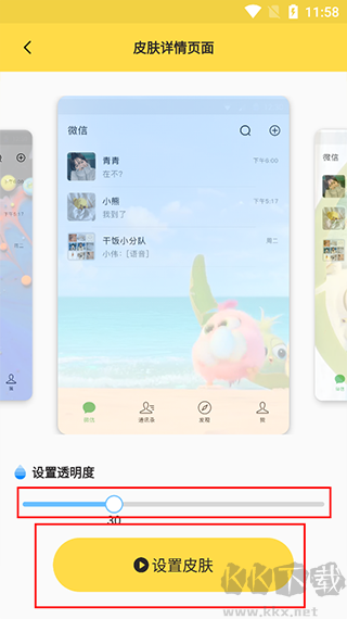 4、成功启用微信/QQ皮肤前,需开启相关权限,权限开启后皮肤即刻生效。