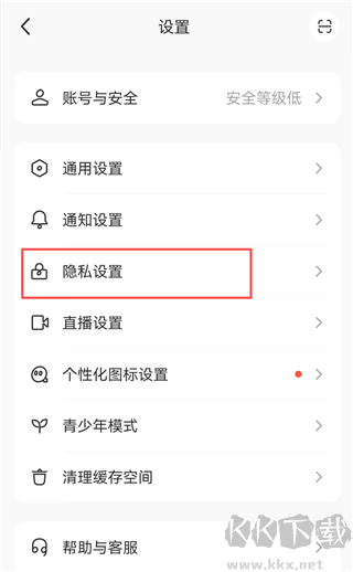 2、进入设置界面后,点击【隐私设置】。