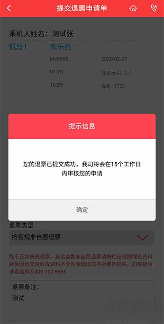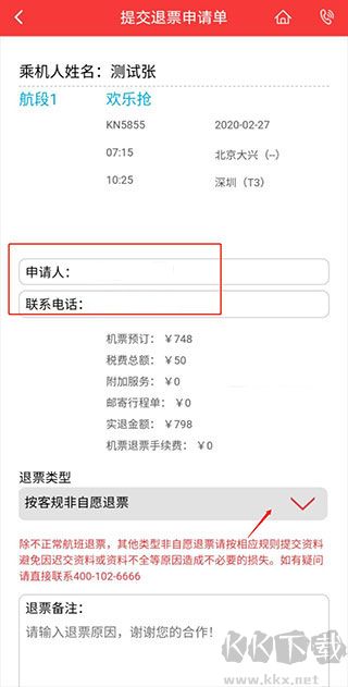 5、填写申请人信息后,选择按客规非自愿退票