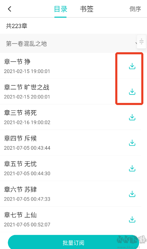 2、找到你想缓存的章节,点击右边的下载按钮。