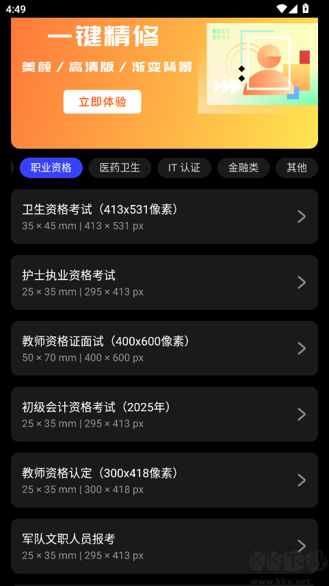 涵盖国家司法考试、注册会计师、大学英语四六级、公务员、教师资格证等各类考试报名所需照片;