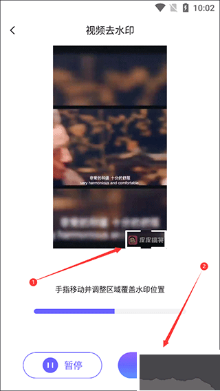 第三步、用手指画出视频中的水印区域,点击【完成】进入去除水印效果预览页面;