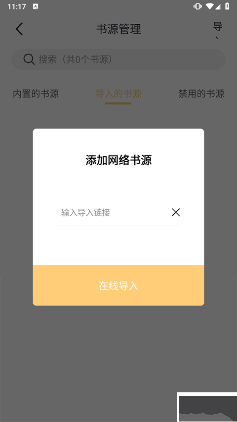 4、例如网络导入,并将书源网址粘贴的框内点击在线导入即可