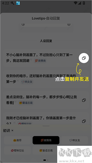 接着ai会给你很多回复的参考消息,你选择一个复制回复就行