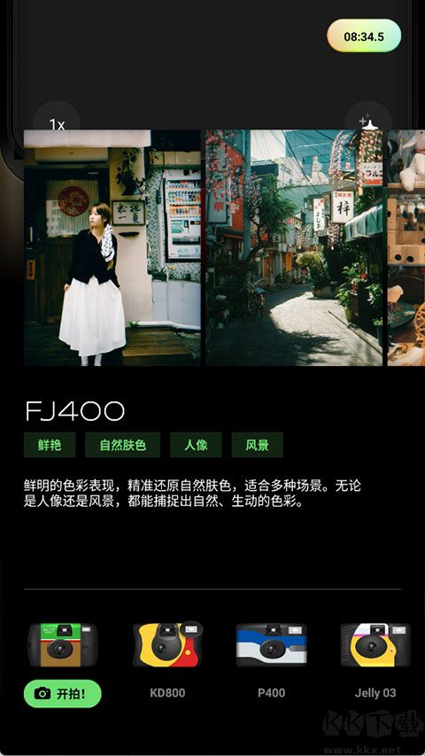 Poka Camapp是一款深受复古摄影爱好者喜爱的安卓拍摄美化软件,内置FJ400、KD800、P400等数十款经典胶片滤镜,真实还原自然肤色、暖调氛围、冷调清新等多种风格,适配人像、风景、夜景等各类拍摄场景。支持滤镜实时预览,拥有鱼眼、运动模糊等创意拍摄模式,可以自由调节曝光、噪点、暗角等参数,制作专属风格照片。具备无限胶卷拍摄、照片导入编辑、添加日期戳等功能,支持一键分享到社交平台,使用过程没有广告打扰。需要的朋友快来下载试试吧!