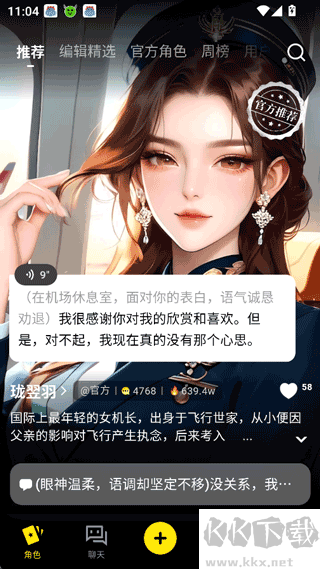 1、进入角色界面就可以通过上下滑动界面来选择喜欢的ai角色进行聊天