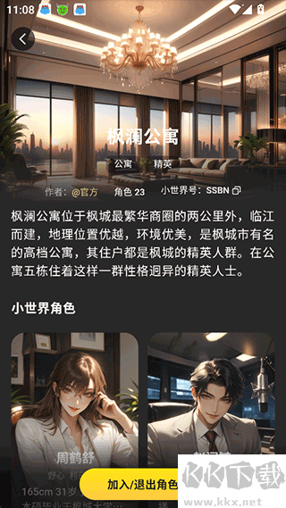 3、点击小世界界面下可以加入角色与别人创建的ai聊天场景进行聊天
