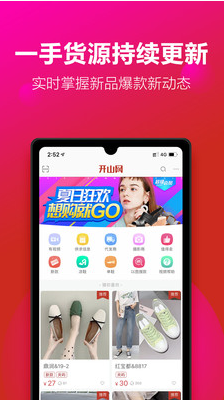 开山网Android版,提供选款,发布,分享到朋友圈等功能。北京聚源百成网络科技有限公司是国内产地货源的先行者,为广大用户提供国内女鞋、箱包、男鞋运动鞋、童鞋童装等多个网销货源平台!