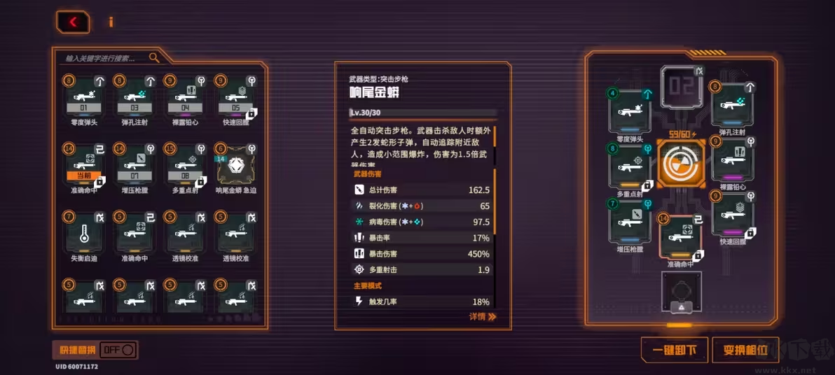 (3)过主线,支线的过程,刷出一些常用蓝色卡,紫色卡,主要是步枪的增伤,加暴击,加暴伤,加射速<快速回膛>,(光阴挺吃这些属性)然后是各种异常伤害加成卡,这是步枪用卡。(刷出来橙色的步枪多重射击更好)<多重射击:打一枪有一定概率射出两发子弹>手枪主要刷各种异常伤害加成卡(不用培养),和增加挂异常几率的紫卡<短枪专家>。