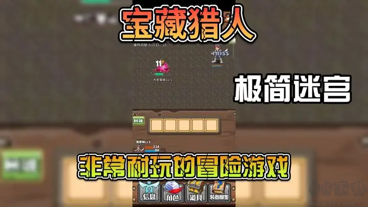 宝藏猎人是一款非常耐玩的迷宫冒险游戏,游戏中玩家可以选择60个角色,每个角色都有独一无二的技能。背包扩容,自动捡装备,自动卖装备,刷钱招更好的,快来愉快的刷刷刷吧!