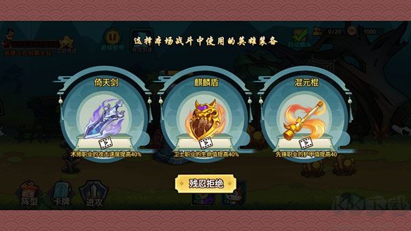 4、在战斗准备界面,认真选择本场战斗使用的英雄装备。