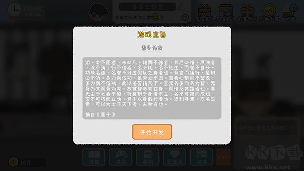 游戏开发者手游是模拟经营类的游戏,手绘画风软萌可爱,刚开始,得做各种人生选择,从上学到创业,每次开始的经历都不同,有个对开发感兴趣的人,自己开了工作室,从啥都不懂开始,一点点摸索,学习优化制作流程,就像真的在经营一间工作室,每天琢磨怎么做出好软件,特别有意思,想尝试新鲜体验的快试试。