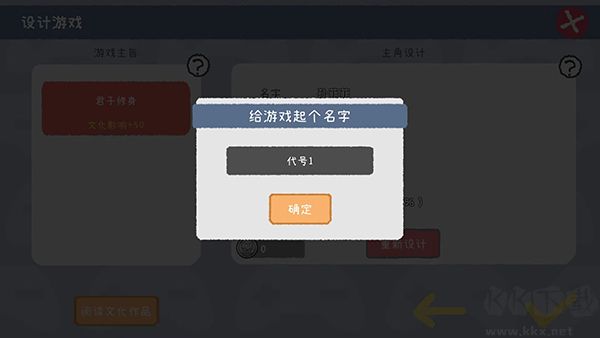 5、将增加文化影响,然后在右侧给主角起名并设计主角,最后点击右下角【打勾】图标完成设计,