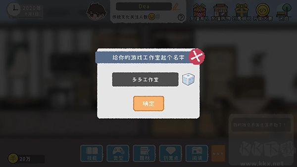 3、接着给工作室取个名,进入主界面,选择【开发游戏】选项,