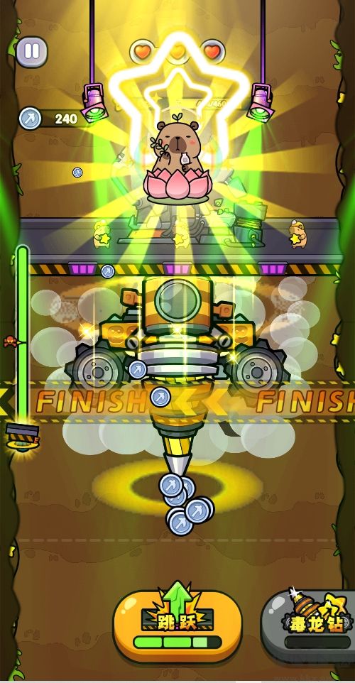 地壳深处埋藏着未知的挑战,玩家将驾驭特制钻探装置展开垂直冒险。单指点击即可完成所有操作——长按屏幕激活钻头冲击波,短触实现紧急跃迁机动。随着钻头持续向下推进,动态生成的岩层结构会随机出现坚固矿石、高温熔岩带以及沉睡的古代兵器,考验玩家对钻探节奏与地形预判的双重把控。