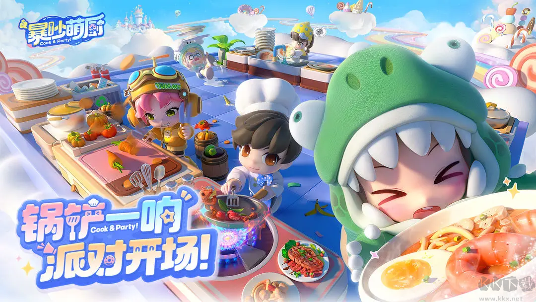 美食爱好者,集结!穿越时空,在欢乐厨房派对手游《暴吵萌厨》的世界,城堡由蛋糕筑成,花车流淌巧克力,丧气咪呜头顶甜甜圈,美食女神淘气迷人。饕餮肆虐,美好破碎,你将乘飞艇穿梭江南水乡、神秘客栈、云端天际,烹饪美食,寻回星星碎片,以佳肴抵御邪恶。煎炒烩烤,探索多样烹饪方式。巧用机关,美食之旅充满惊喜。与好友一起,共赴这场美食与冒险的奇幻旅程。如果你也想成为一个美食家,那么爆吵萌厨里见。
