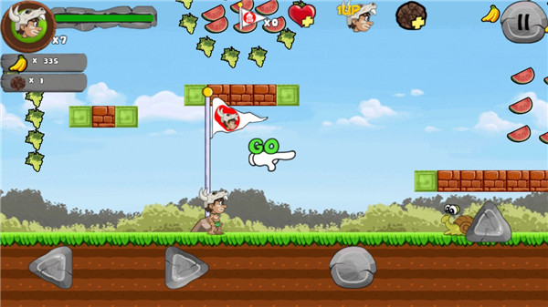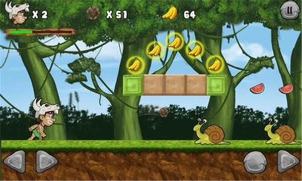 你的原始人女朋友被抓走了,你需要在各个村庄找到你女朋友的线索,村庄、丛林中都是你需要冒险的地点,相信你会找到你的女朋友的。一路上玩家可以收取各种丛林中的水果!