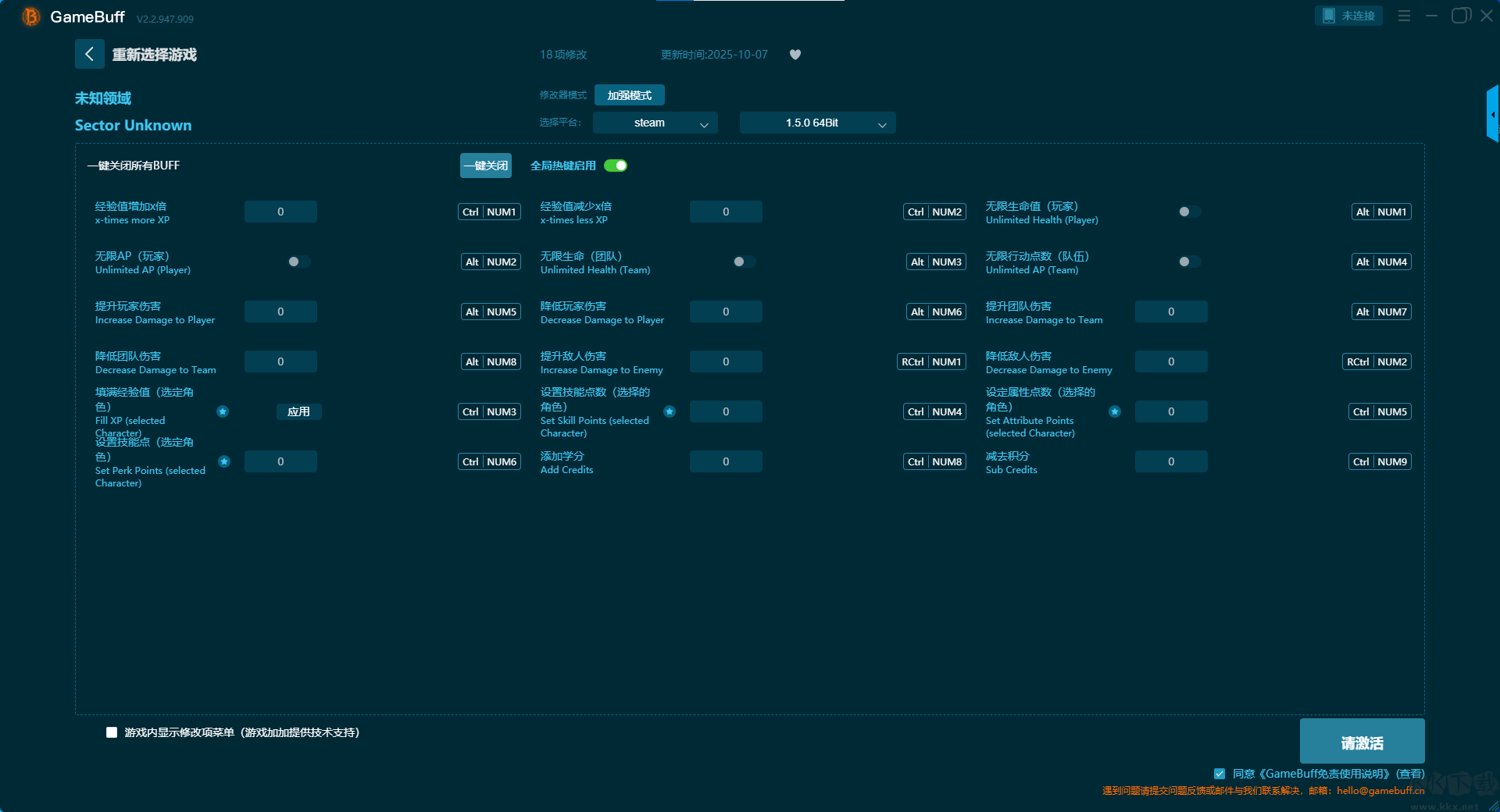 未知领域18项修改器pc重置版是一款专业的游戏修改辅助功能。玩家在游戏中可自由开启经验值增加 x 倍、经验值减少 x 倍、无限生命值(玩家)、无限 AP(玩家)、无限生命(团队)、无限行动点数(队伍)、提升玩家伤害、降低玩家伤害、提升团队伤害等多达十八项的修改模式。助力玩家在游戏中自由畅爽游玩。需要的小伙伴快来KK下载站下载体验吧。