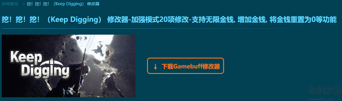 Keep Digging20项修改器pc国际版是一款专业好用的游戏辅助修改器,可以在游玩Keep Digging时一键开启无限金钱、增加金钱、将金钱重置为 0、无限电池、设置电池等级、最大电池等级、设置电池、所有铲子已解锁等20项修改功能。需要的小伙伴快来KK下载站下载体验,助力你在游戏中自由畅爽游玩。